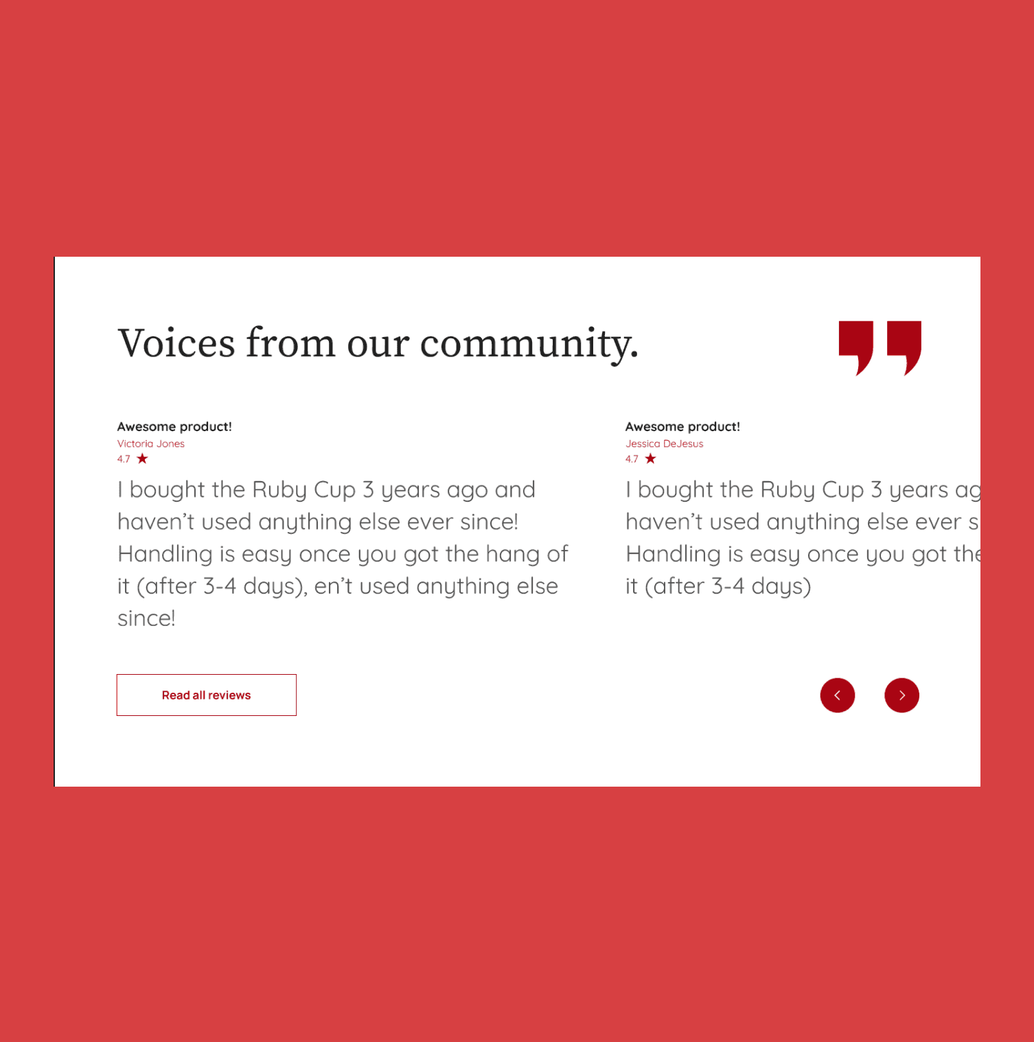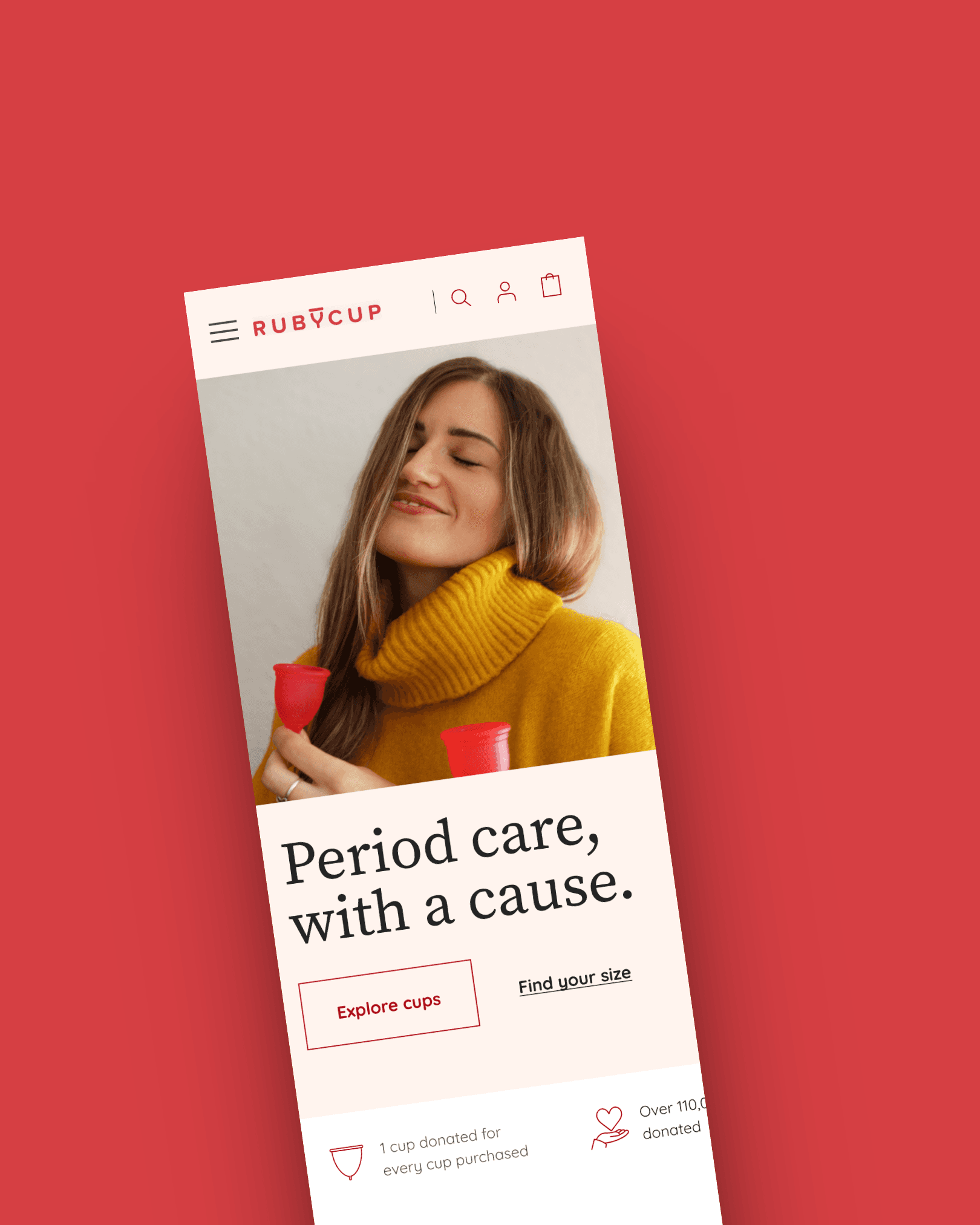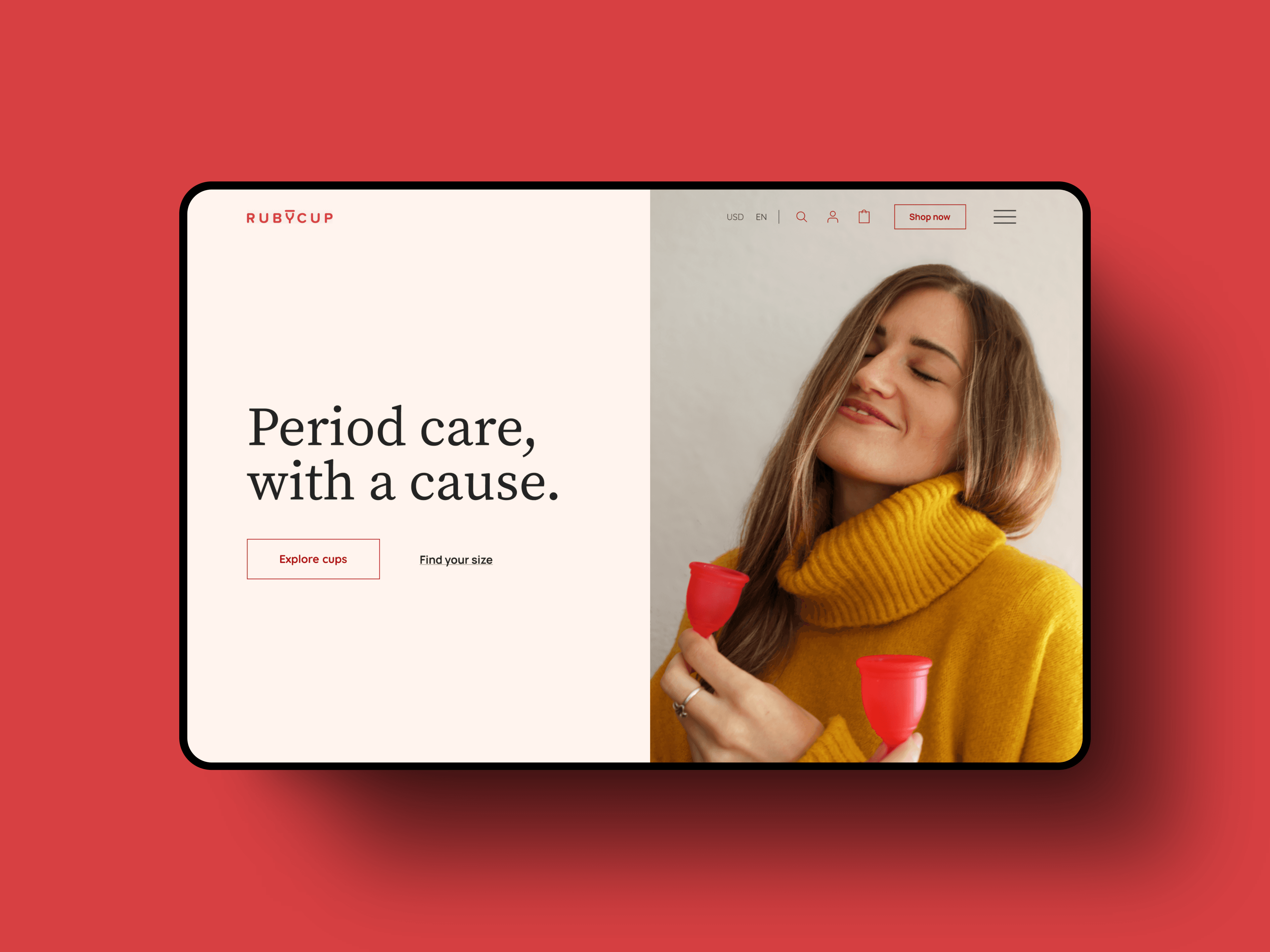 The current site design feels harsh and visually cluttered, failing to reflect Ruby Cup’s calm, empowering, and body-positive brand personality.