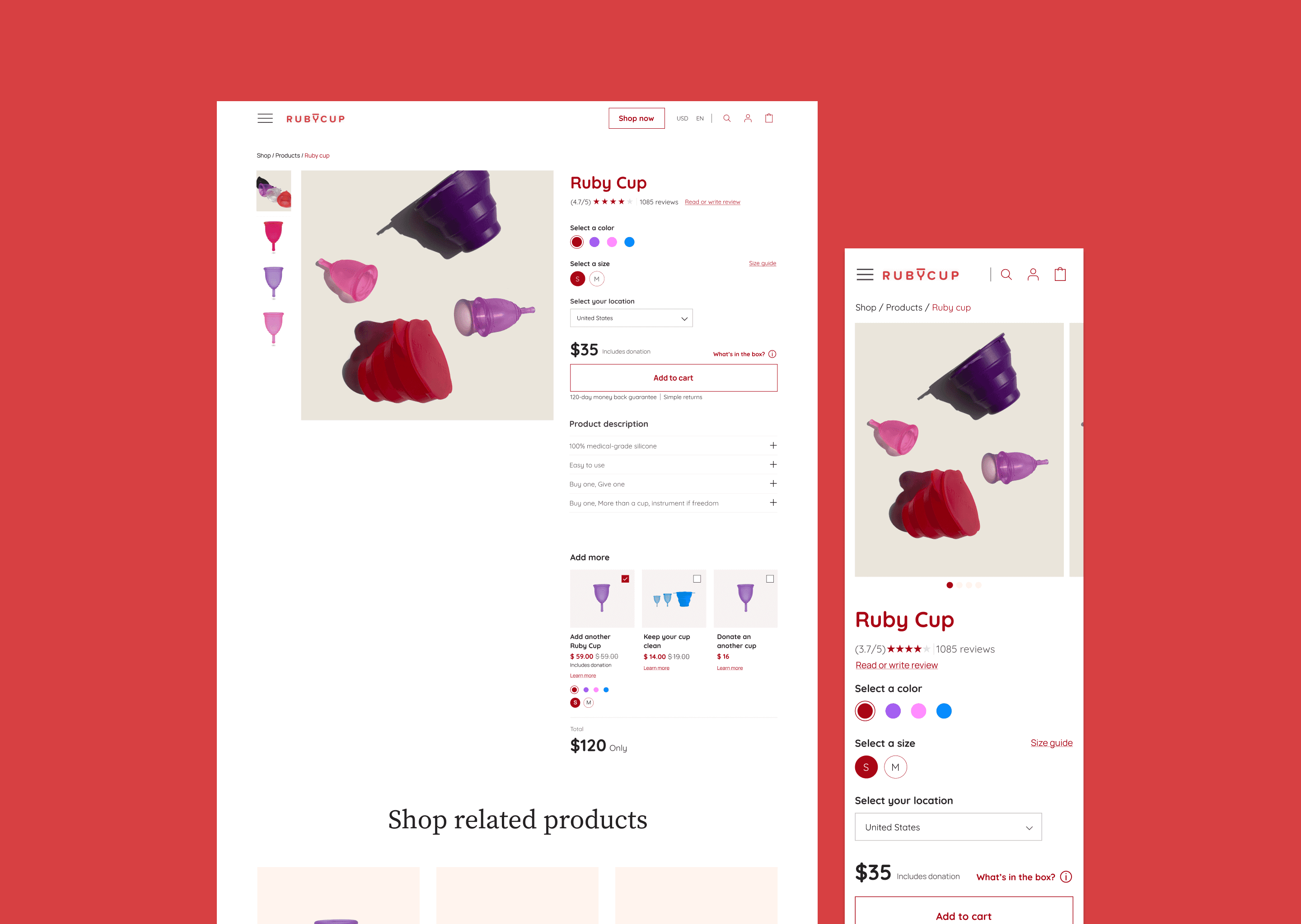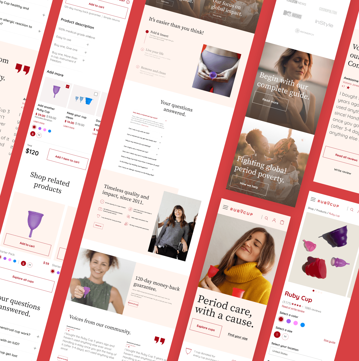 Ruby Cup sells menstrual cups, sterilisers, Kegel trainers, and panties for women in England, Germany & USA. They want to redefine the user experience for their eCommerce site. Also they had plans for scaling up their service accross more regions of Europe and UAE.