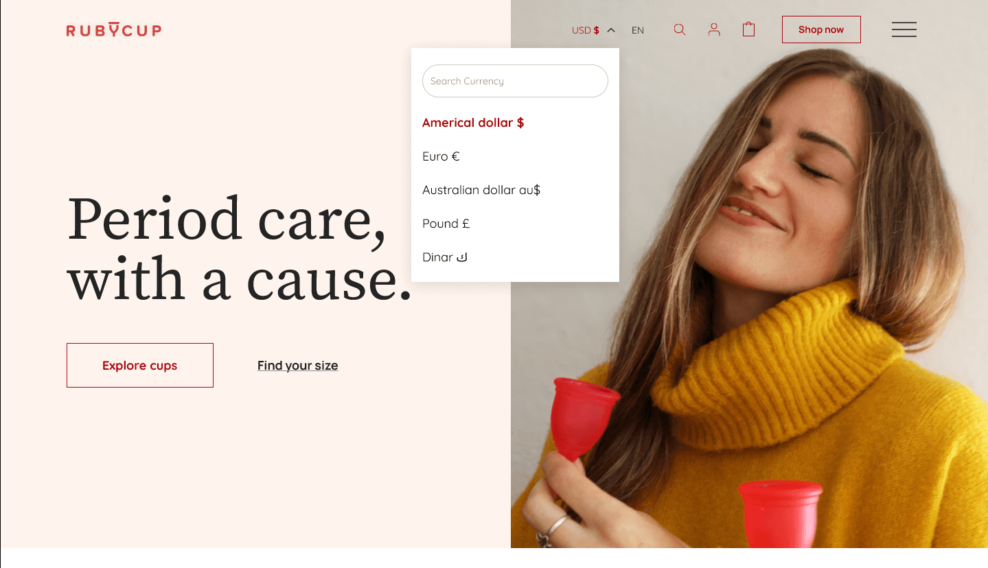 The site currently does not support multilingual access, which alienates non-English speakers, even though Ruby Cup has a presence in Germany and is planning to scale further across Europe and the UAE.